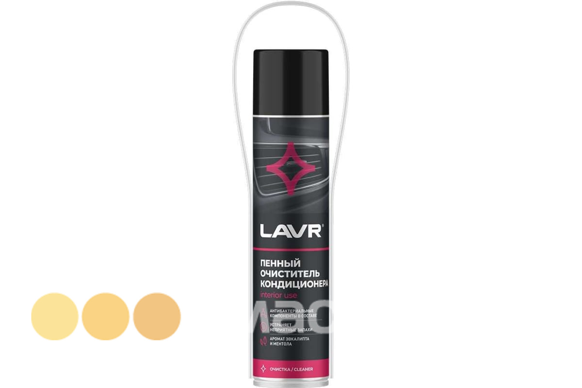 Пенный очиститель кондиционера антибактериальный LAVR – специальное средство для удаления бактерий и плесени в труднодоступных местах системы вентиляции и кондиционирования автомобилей: воздуховодах, патрубках, испарителях, дренажных трубках. Устраняет загрязнения и неприятный запах в системе. Подходит для самостоятельного применения.