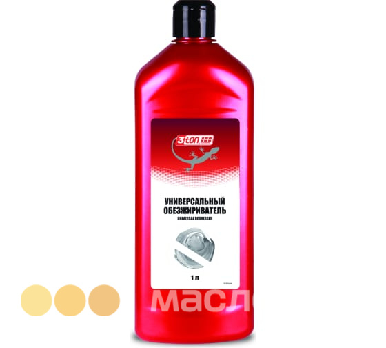 Применяется для очистки и обезжиривания поверхностей деталей на всех этапах кузовного ремонта. Пригоден для обезжиривания старых лакокрасочных покрытий, включая термопластичные акриловые, стали, оцинкованной стали, алюминия, загрунтованных и шпатлеванных поверхностей. 3ton Универсальный обезжириватель позволяет быстро и эффективно очистить поверхность от различных загрязнений, жиров, масел, смолы, гудрона, силиконов и т.д.