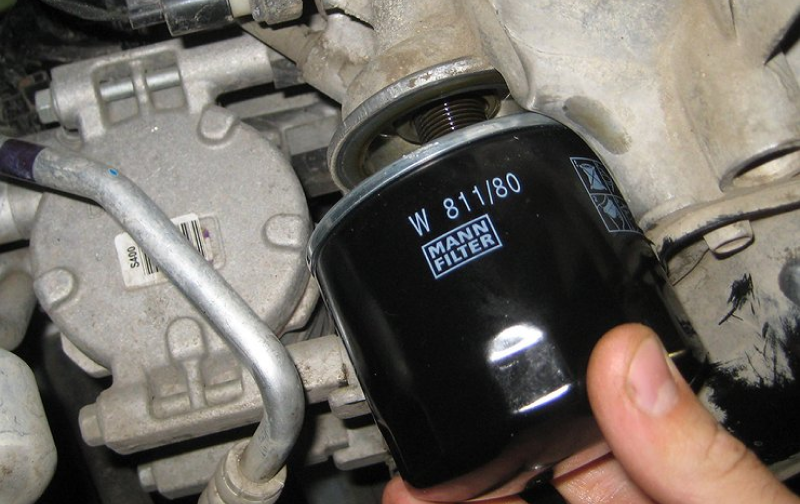 - Демонтаж старого фильтра. Фильтр аккуратно откручивается с использованием специального инструмента. Посадочное место очищается от остатков старого масла и загрязнений.